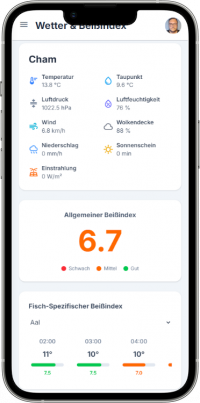 - Allgemeiner Beißindex: Ein auf Wetterfaktoren und Wasserstand basierender Index, der die generelle Beißlaune der Fische prognostiziert.